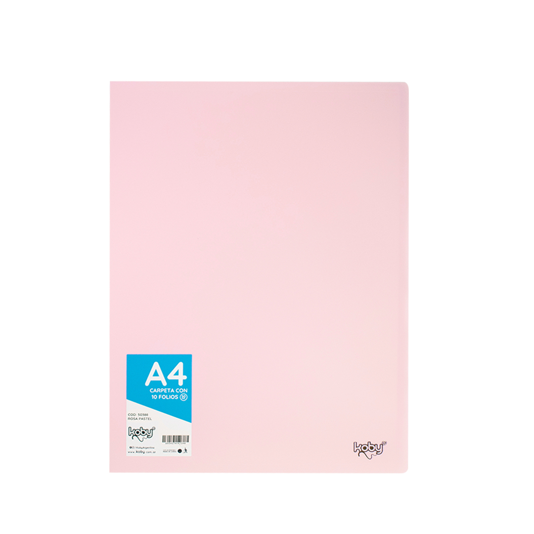 CARPETA C/10 FOLIO A4 KOBY ROSA PASTEL