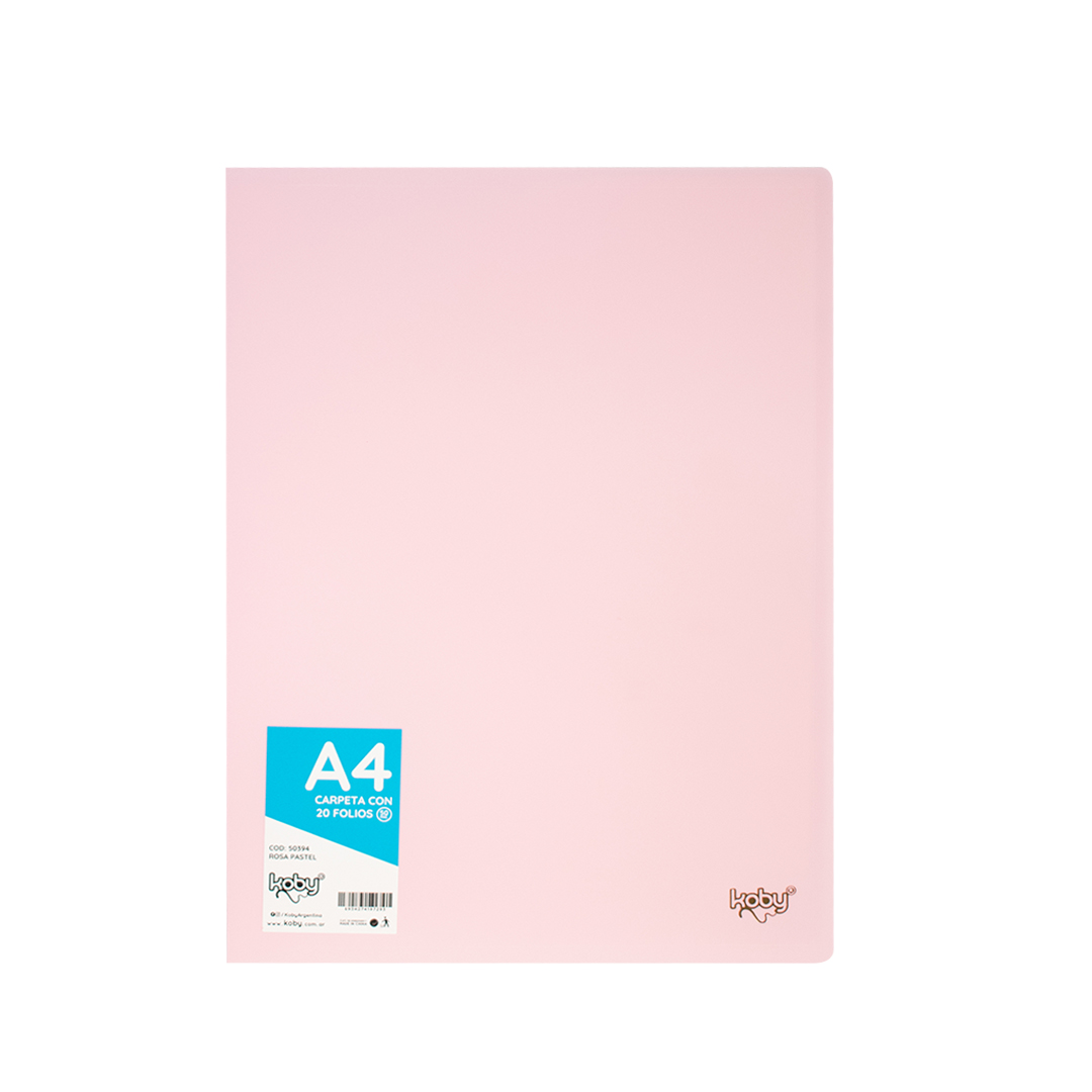 CARPETA C/20 FOLIO A4 KOBY ROSA PASTEL