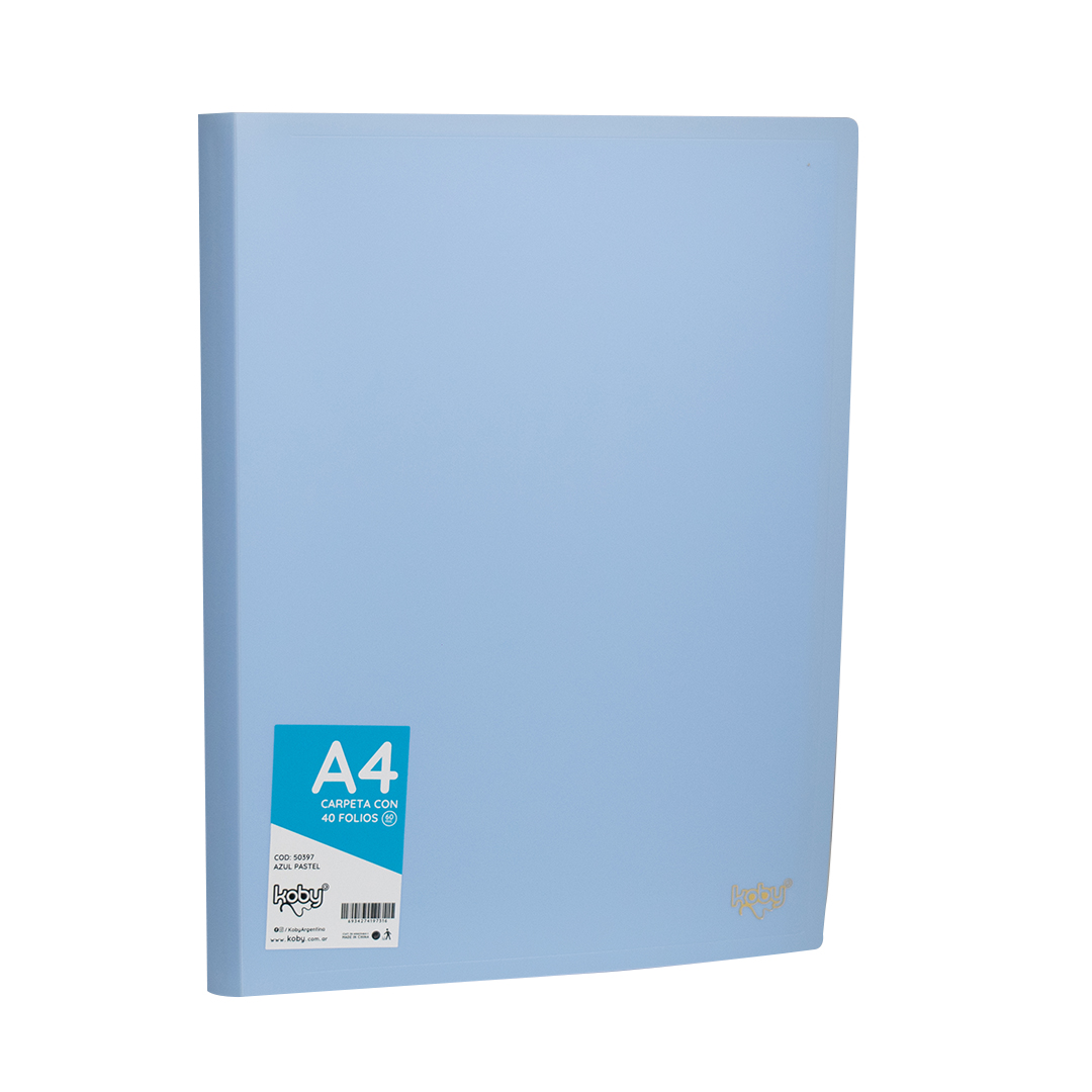 CARPETA C/40 FOLIO A4 KOBY AZUL PASTEL