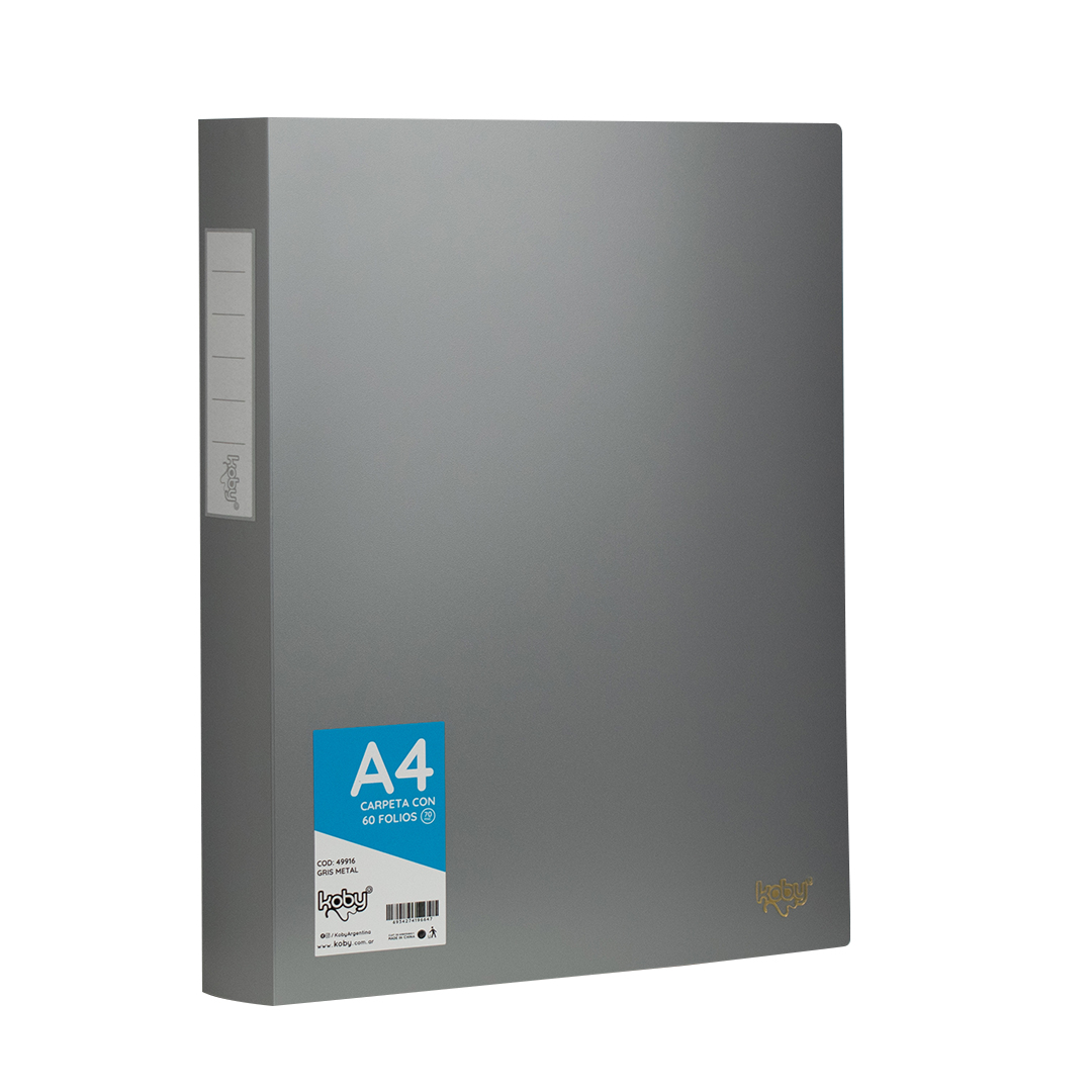 CARPETA C/60 FOLIO A4 KOBY GRIS METAL