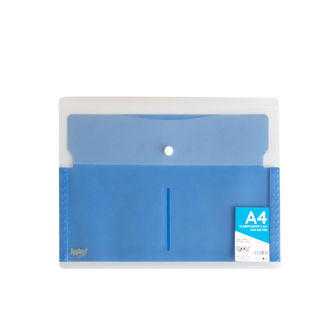 CLASIFICADOR 5 DIV C/BOTON A4 KOBY CRIS/AZUL