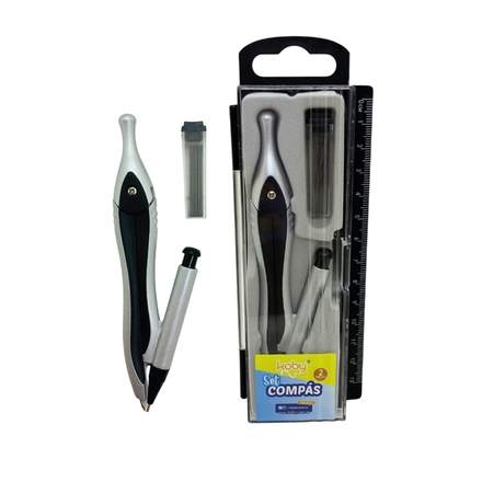 HomeCatálogoESCOLARCOMPAS KOBY 2PC METAL C/PORTAMINA C/REGLA