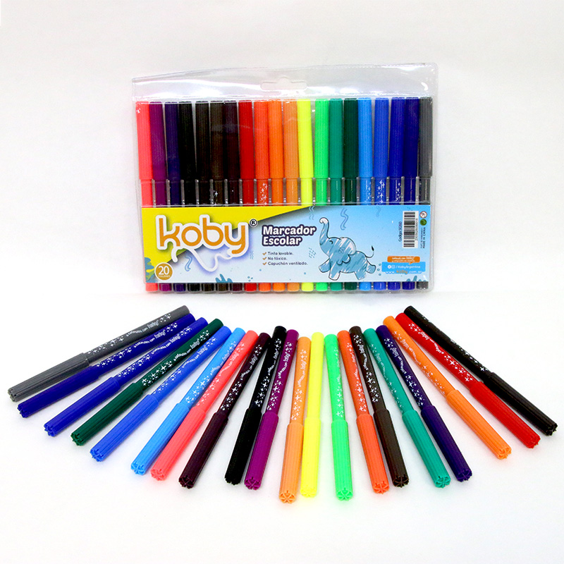 HomeCatálogoCOLOREOMARCADOR KOBY ESCOLAR X20 LAVABLE 1MM