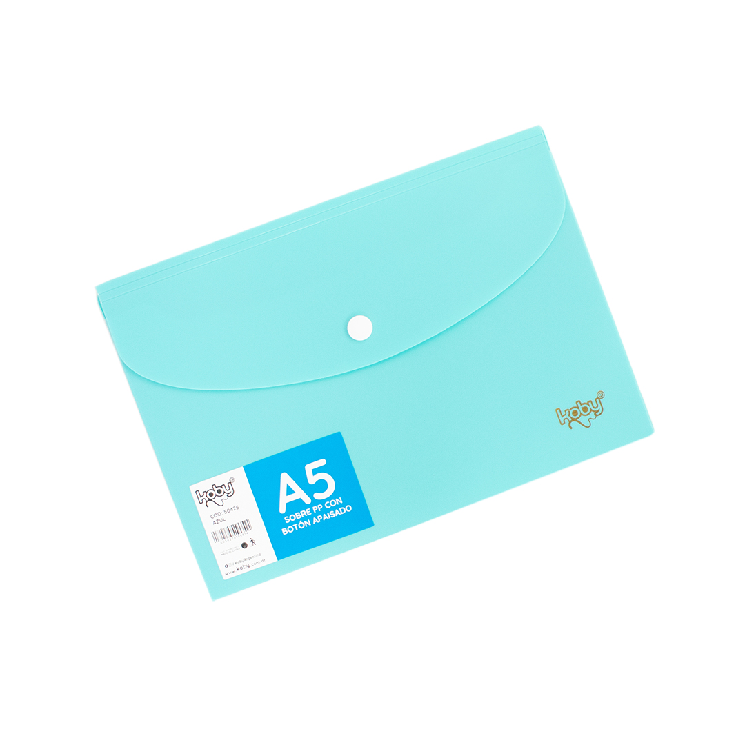 SOBRE PP C/BOTON A5 KOBY APAISADO AZUL TURQ.